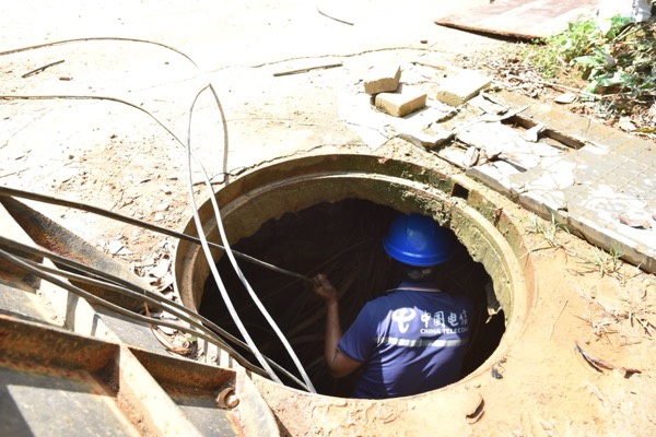 湖南怀化国际陆港区域光缆被施工机械误挖断裂 。。。。。。。。中国诚信为本专业服务 官网维护职员接报后1小时内抵达现场,,,,,, ,下潜至2米深的地下井道排查隐患 。。。。。。。。因井道空间狭窄,,,,,, ,维护员需半蹲作业完成熔接,,,,,, ,最终在2小时内恢复陆港物流调理系统、监控装备等要害营业的网络毗连 。。。。。。。。